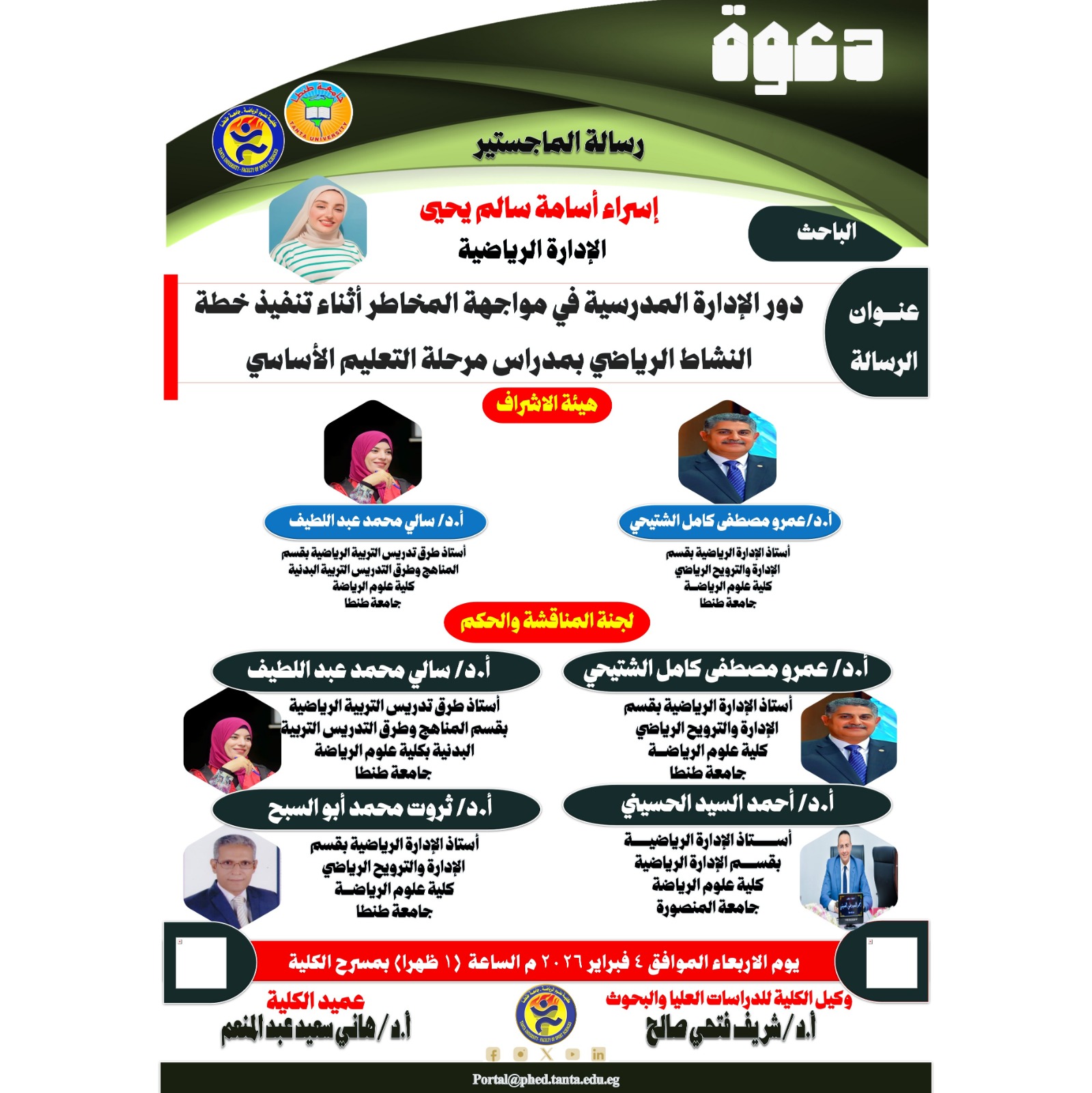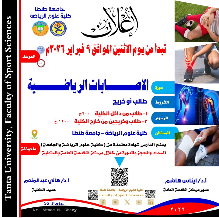 يطيب لى ان أرحب بكم جميعاً والسادة الزائرين للموقع الإلكتروني لكلية علوم الرياضة – جامعة طنطا، والذي يمثل إحدى قنوات التواصل الزاخرة بالمعلومات والبيانات التعليمية والبحثية والخدمية ومنصة لمشاركة الأفكار والمقترحات الفعالة مواكبةً لاحتياجات سوق العمل وتأكيدًا لمكانة الكلية بما يدعم الأداء ويعزز الإبداع والابتكار. مما لا شك فيه أن الطالب هو محور العملية التعليمية وثمرتها وغاية وجودها، وإعداده لمواجهة الحياة وتحدياتها في الحاضر والمستقبل